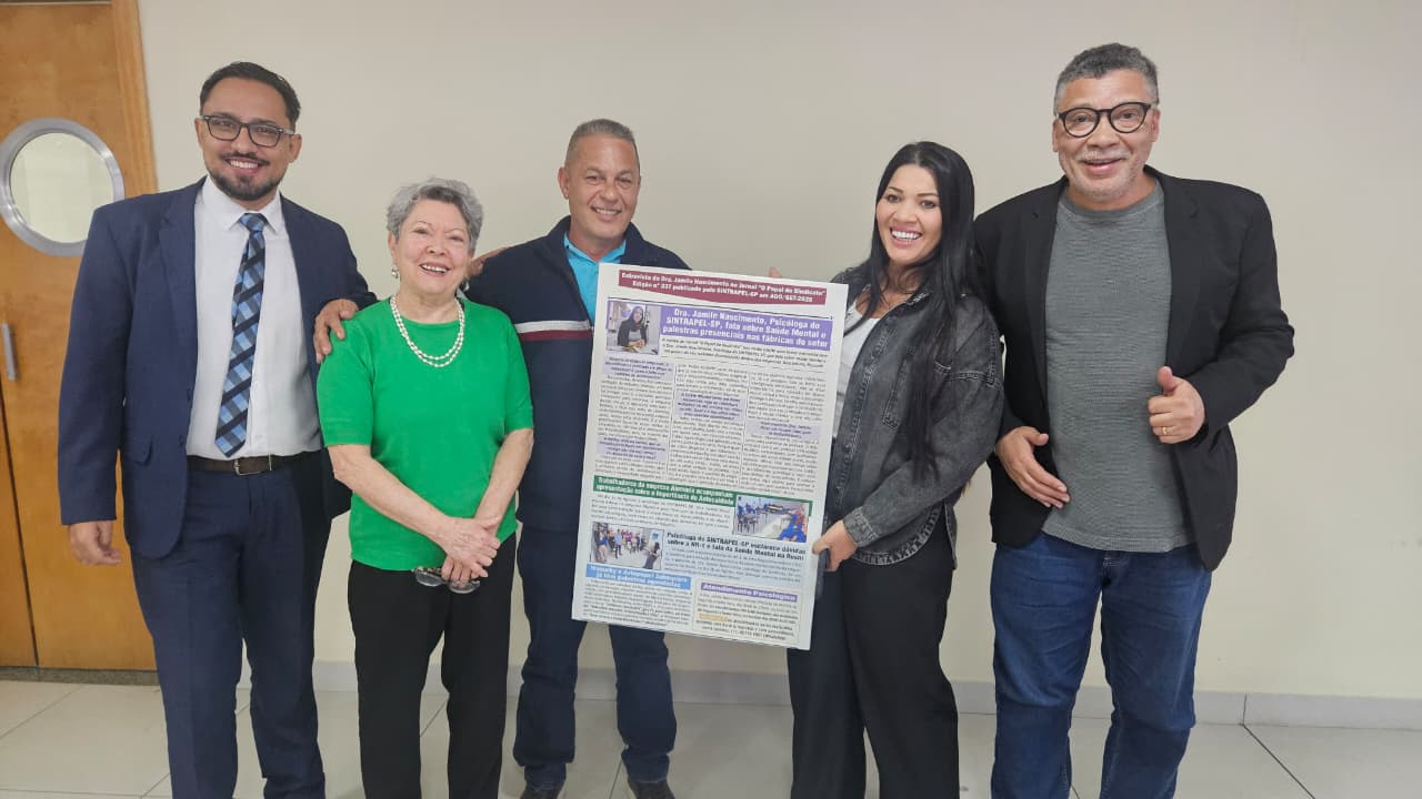 Ao final da Palestra, o SINTRAPEL-SP homenageou a Desembargadora com uma placa ressaltando o fato dela