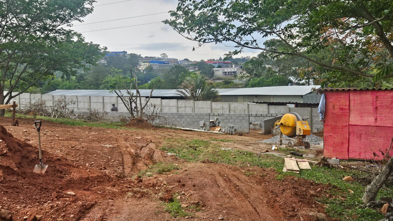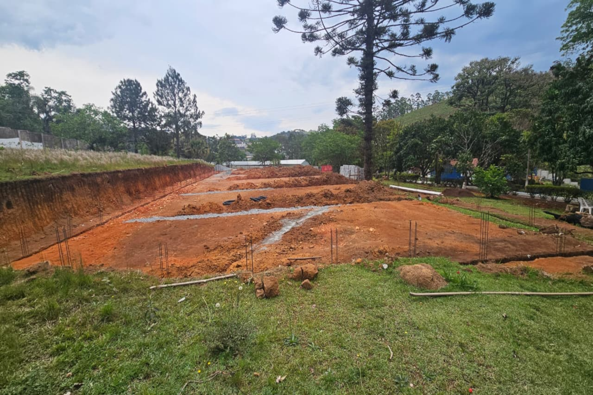 As obras já estão bem adiantadas, a todo o vapor! Estão sendo construídos vários chalés, mais um campo society, vestiários e uma piscina exclusiva