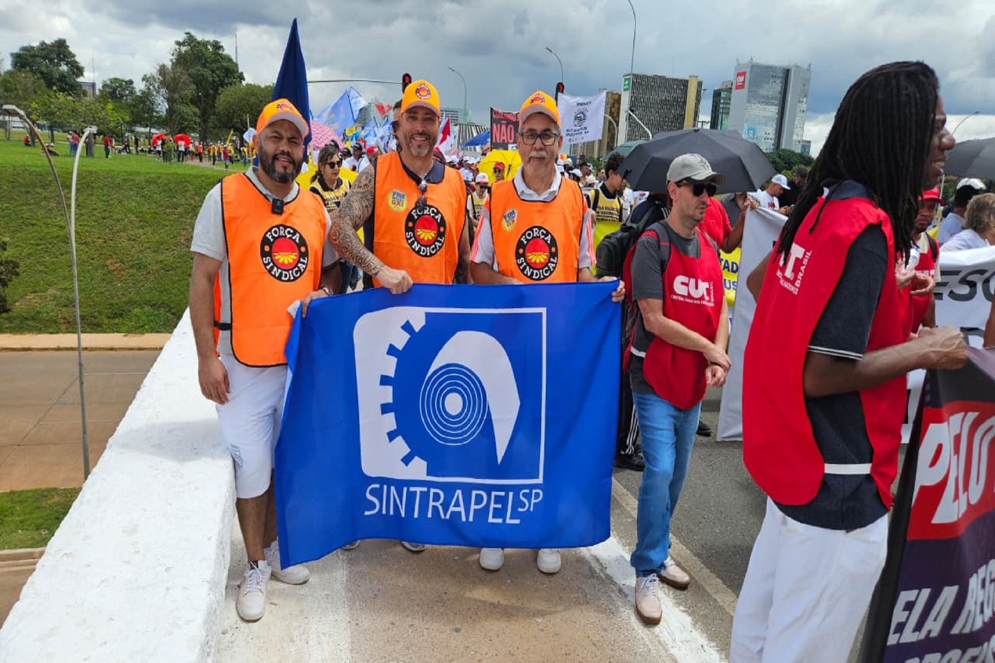 O SINTRAPEL-SP esteve na última quarta-feira, dia 15 de abril, participando da Marcha da CONCLAT 2026,