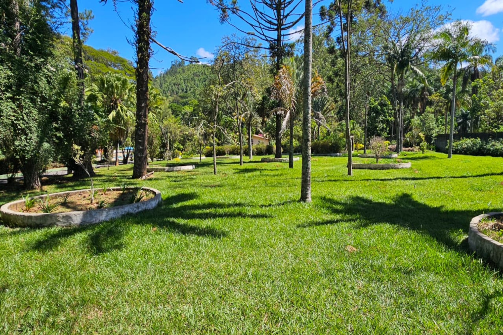 As obras já estão bem adiantadas, a todo o vapor! Estão sendo construídos vários chalés, mais um campo society, vestiários e uma piscina exclusiva