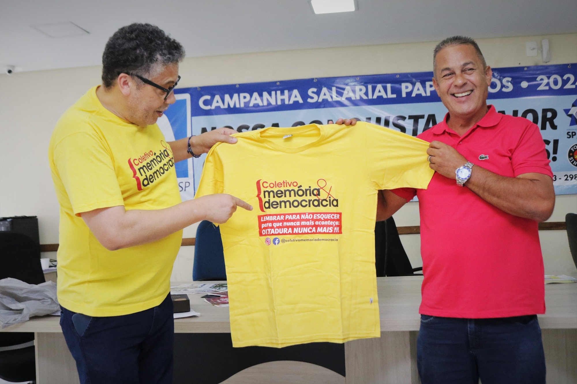Por fim, encerrou a sua fala entregando ao Presidente Aristides Filho (Ari) a Camiseta Oficial do Coletivo Memória