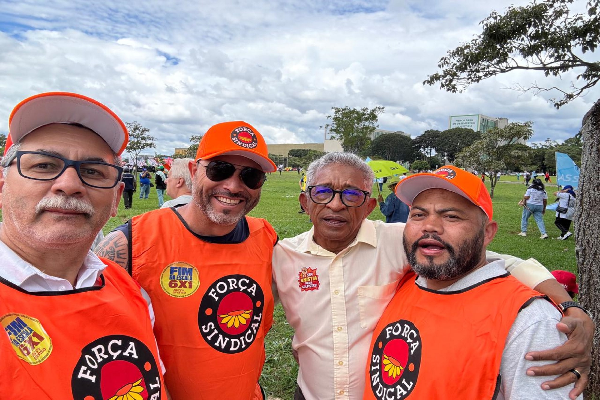 que contou com a presença de milhares de trabalhadores e trabalhadoras, foi iniciado no Teatro Nacional e foi até a Praça dos Três Poderes.